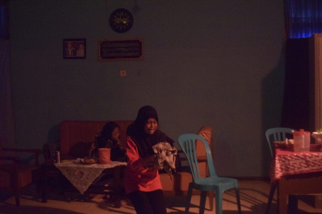 Dengan penonton terbatas—sekitar 30 siswa dan beberapa guru yang telah mendaftar—pertunjukan yang dimulai pukul 16.00 WIB ini berlangsung hangat di Ruang Lab. Agama SMPN 1 Wagir. Beberapa penonton bahkan tampak menitikkan air mata haru di akhir pementasan.