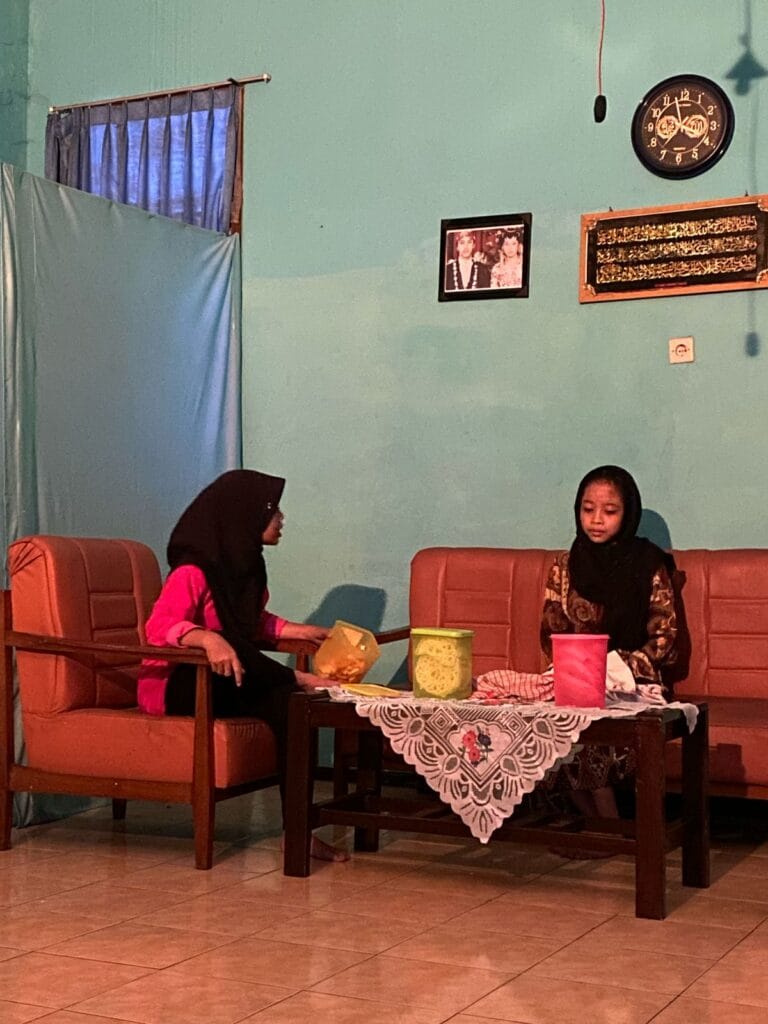 Pentas ini juga diawali dengan pertunjukan pantomim yang tak kalah menarik, dibawakan oleh Nabila Adelia (satu-satunya pemain dari kelas 7) dan Aidatul Masyururoh. Aksi mereka menjadi pembuka yang segar dan berhasil mencuri perhatian penonton sebelum memasuki suasana emosional dalam lakon utama.