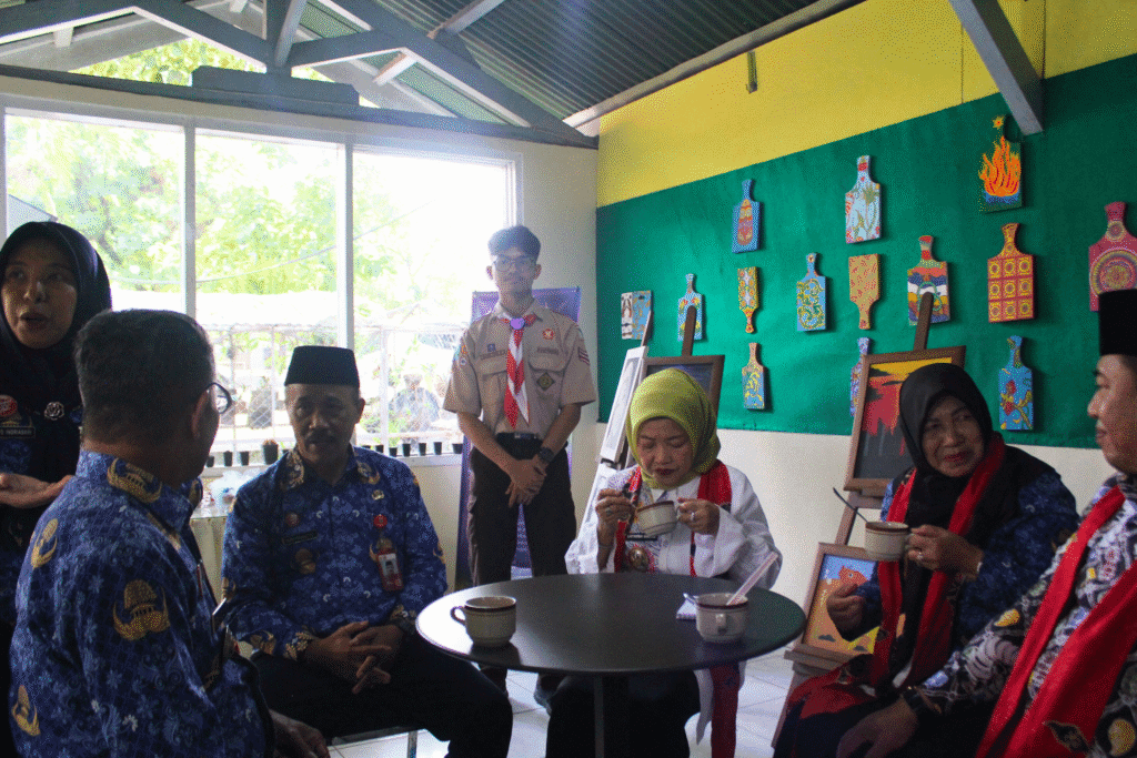 Suasana semakin hangat ketika rombongan diajak berkeliling meninjau berbagai area unggulan SPANEWA. Salah satu yang menarik perhatian adalah kunjungan ke Pokja 3R (Reduce, Reuse, Recycle) dari Tim Adiwiyata yang memamerkan sejumlah produk kreatif ramah lingkungan hasil karya siswa dan guru. Produk-produk seperti lilin aromaterapi, sabun dari minyak jelantah, serta olahan cincau khas SPANEWA menjadi bukti nyata bahwa semangat inovasi dan kepedulian lingkungan telah tumbuh kuat di sekolah ini. Wakil Bupati sempat menyempatkan diri duduk bersama tim Adiwiyata sambil menikmati cincau segar hasil racikan siswa, yang menambah nuansa kebersamaan di tengah kegiatan penuh makna tersebut.