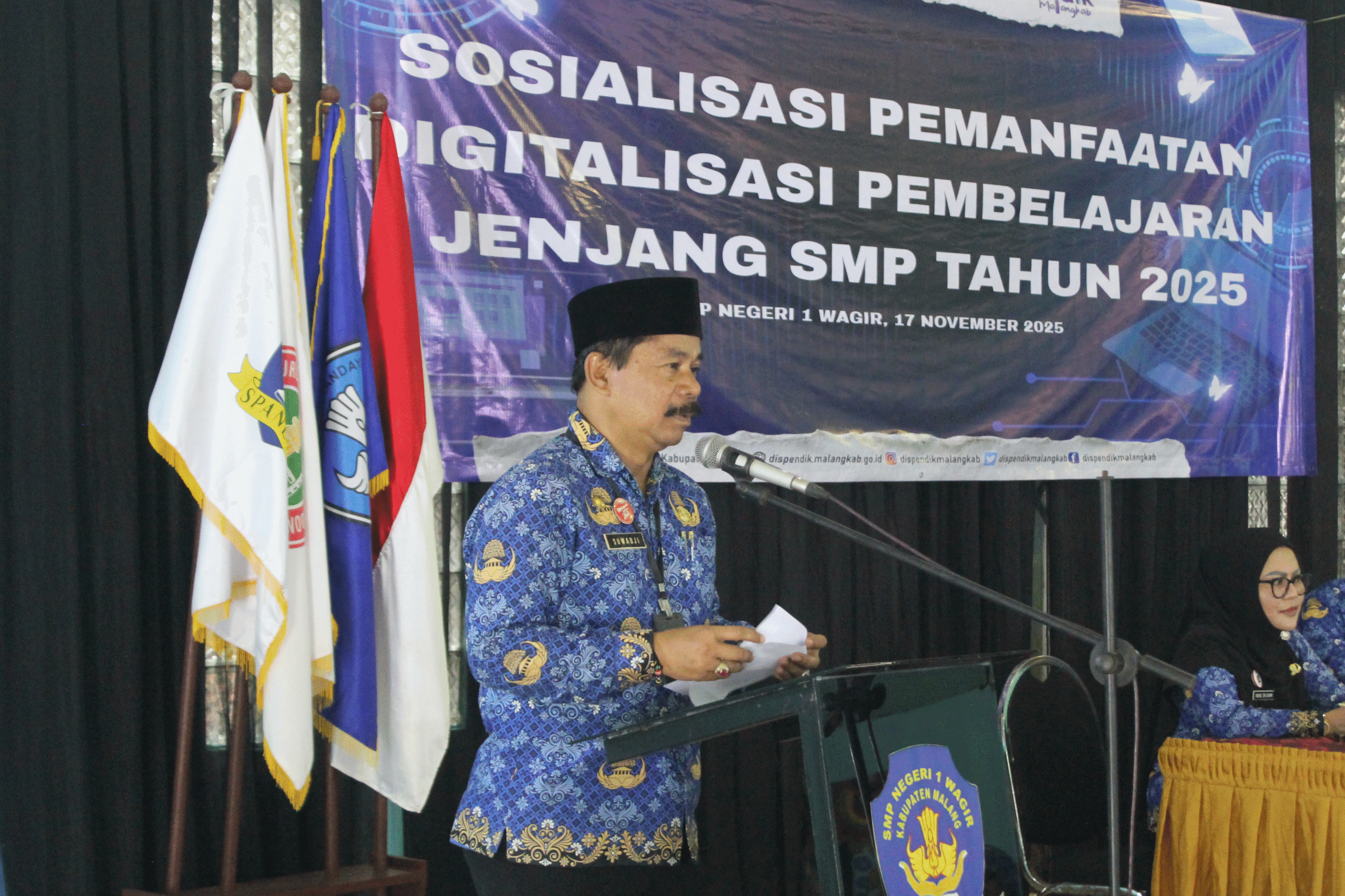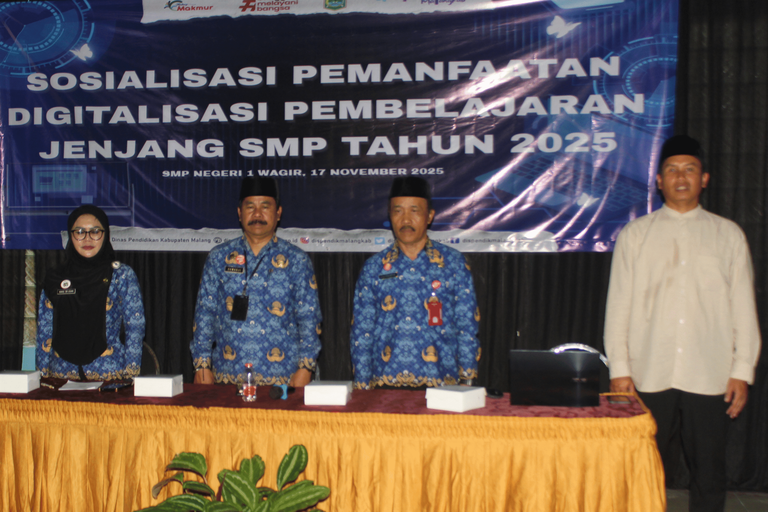 Wagir, 17 November 2025 – Di tengah tuntutan persaingan global yang semakin ketat, SMPN 1 Wagir kembali menegaskan posisinya sebagai pionir dengan menjadi tuan rumah bagi acara penting di tingkat kabupaten. Pada hari Senin, 17 November 2025, bertempat di Graha Spanewa, berlangsung kegiatan Sosialisasi Pemanfaatan Digitalisasi Pembelajaran Jenjang SMP Tahun 2025 yang dihadiri oleh berbagai pemangku kepentingan pendidikan se-Kabupaten Malang.