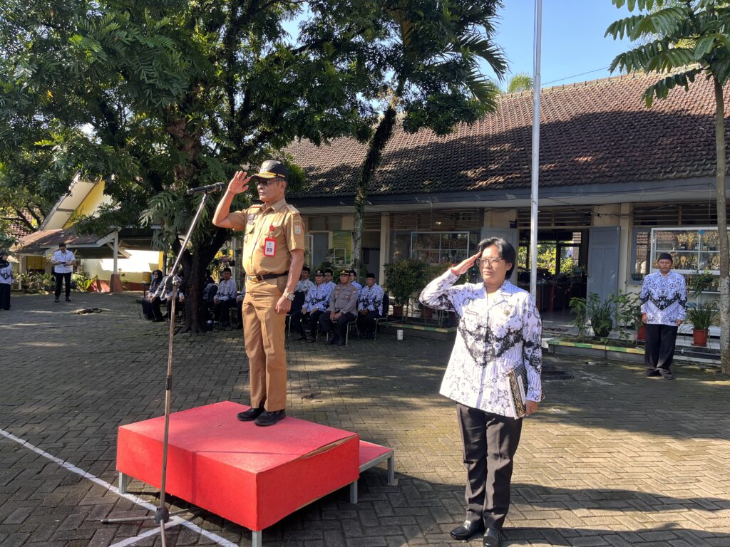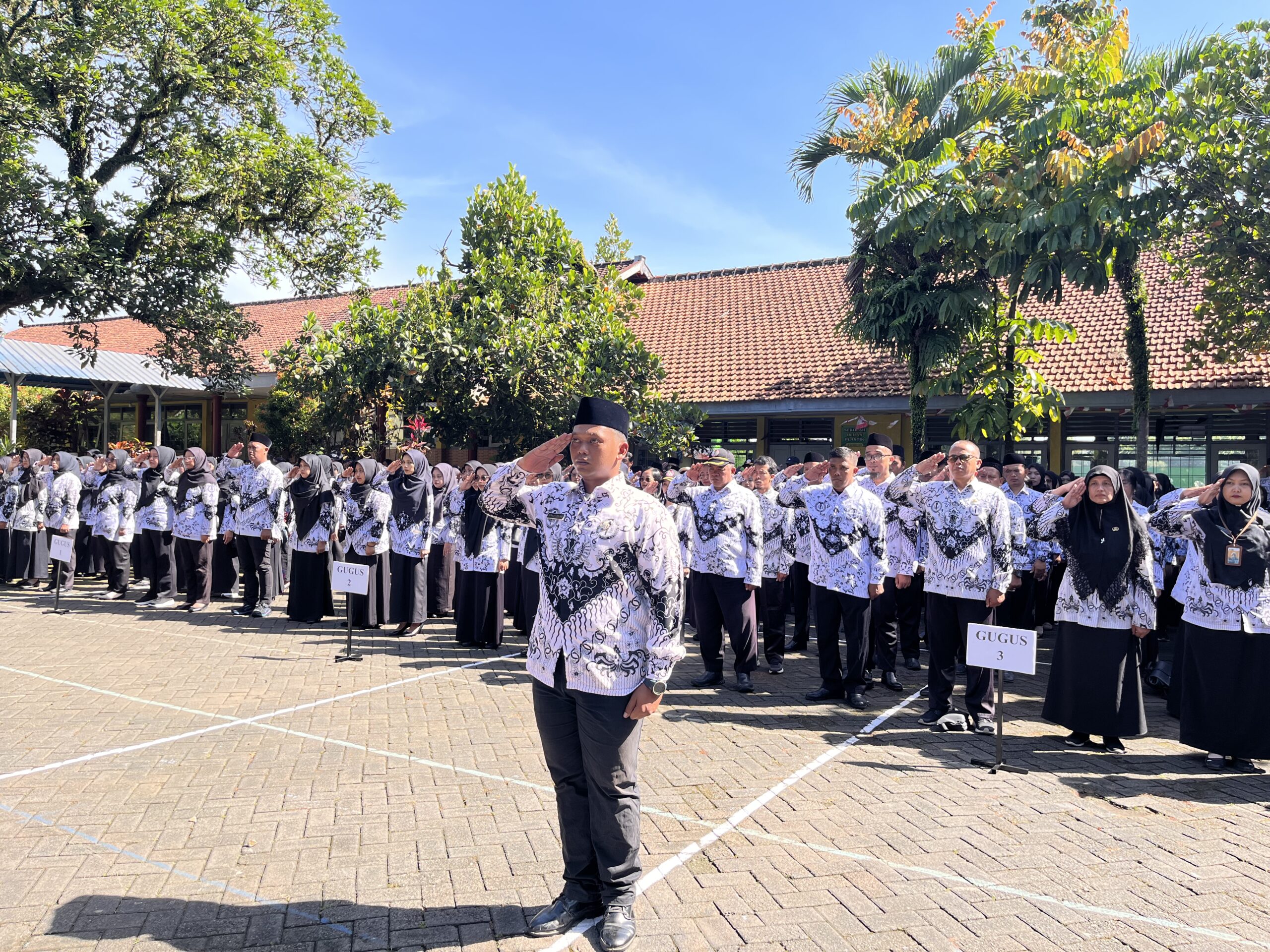 Lapangan Upacara SMPN 1 Wagir dipenuhi oleh para pendidik dari berbagai jenjang, mulai dari IGTKI (TK), SD, hingga SMP se-kecamatan, menciptakan suasana kekeluargaan yang khidmat dan hangat.