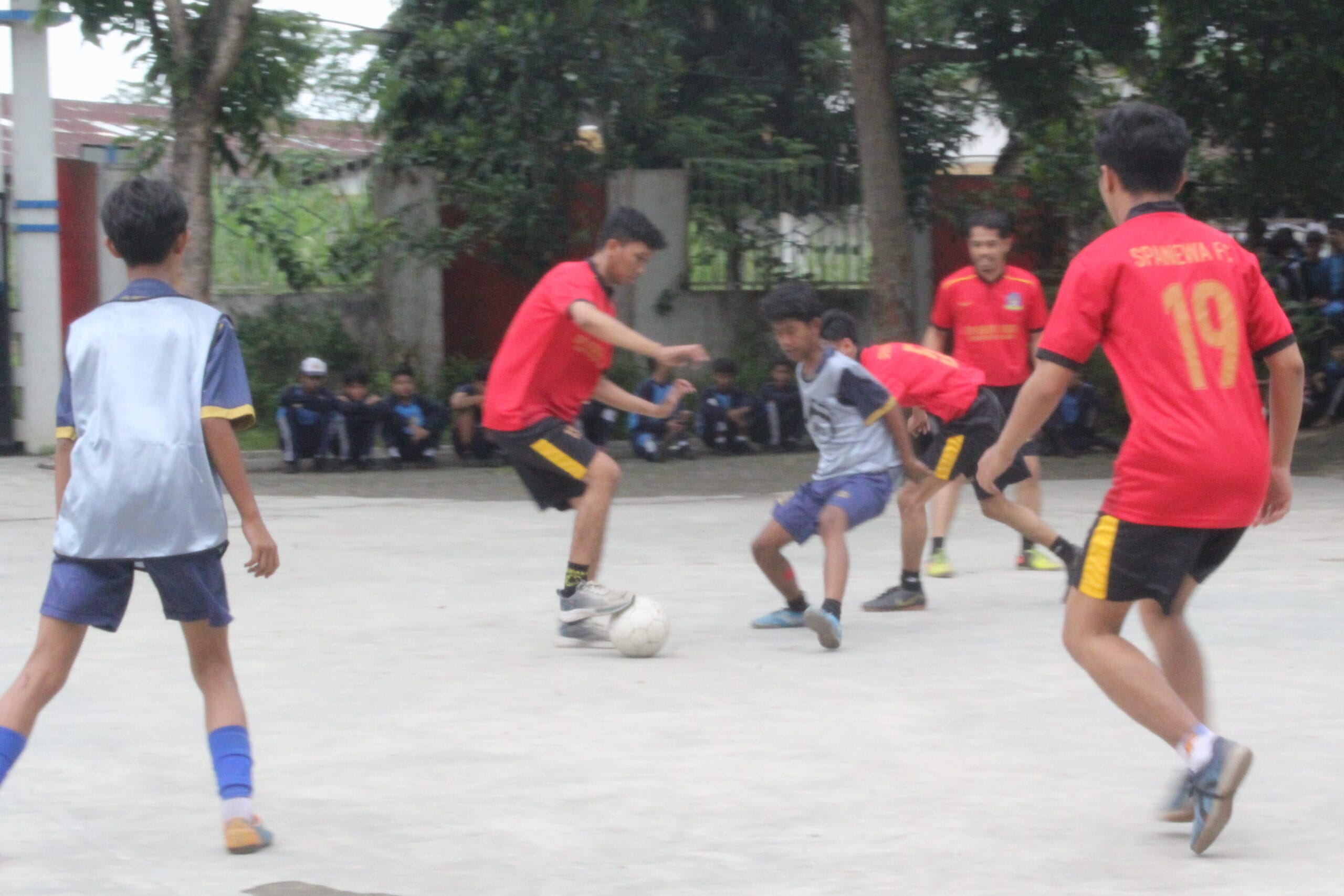 Puncak kemeriahan acara Class Meeting tahun ini ditandai dengan sebuah laga ekshibisi yang sangat istimewa dan menghibur. Pertandingan persahabatan futsal digelar antara tim Guru Laki-laki melawan tim “Spanewa All Stars”, sebuah tim tangguh yang merupakan gabungan siswa-siswa terpilih dari kelas 7 hingga 9. Pertandingan ini bukan sekadar adu fisik, melainkan simbol keakraban dan egaliternya hubungan antara pendidik dan peserta didik di luar ruang kelas.