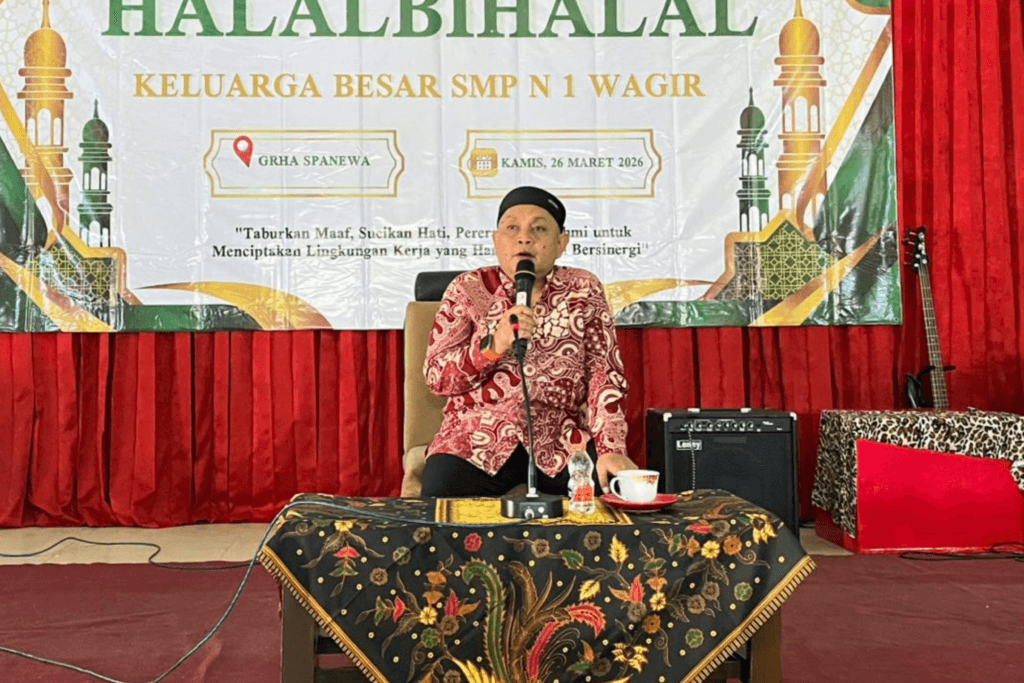 WAGIR, 26 MARET 2026 — Halal Bihalal SMPN 1 Wagir yang diselenggarakan pada hari Kamis ini menjadi momentum penting untuk mempererat ukhuwah Islamiyah di lingkungan sekolah. Setelah sebulan penuh menjalankan ibadah puasa Ramadhan, keluarga besar Spanewa berkumpul dalam suasana yang penuh dengan kehangatan dan rasa syukur. Acara ini dihadiri secara lengkap oleh jajaran Dewan Guru, anggota Komite Sekolah, beserta seluruh staf dan karyawan. Momen kebersamaan ini tidak hanya sekadar tradisi tahunan, melainkan sebuah kebutuhan spiritual untuk membersihkan hati sebelum kembali menjalankan tugas mulia mencerdaskan anak bangsa.